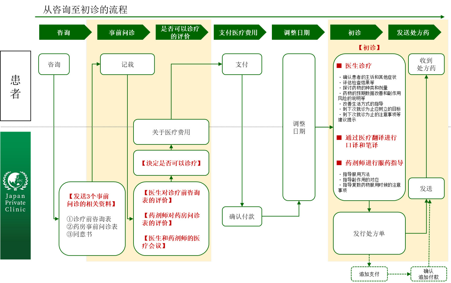 如果医生确定“可以诊疗”,我们会提供“就医费用信息”。 确认付款后,我们将进行初诊的“日期和时间调整”。