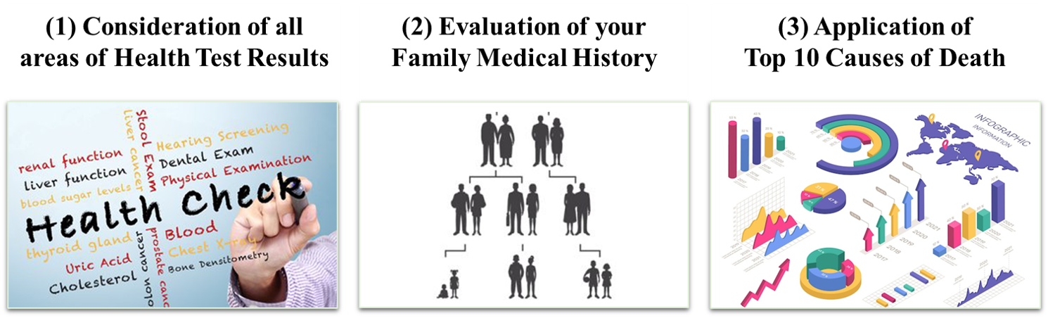 For cancers that are relatively common in your country such as the Top 10 Causes of Death in your country, we propose an appropriate plan on a monthly or yearly basis regarding “when the next examination should be performed” before their occurrence.